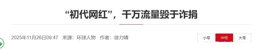 2025日环球人物 “初代网红”,千万流量毁于诈捐
